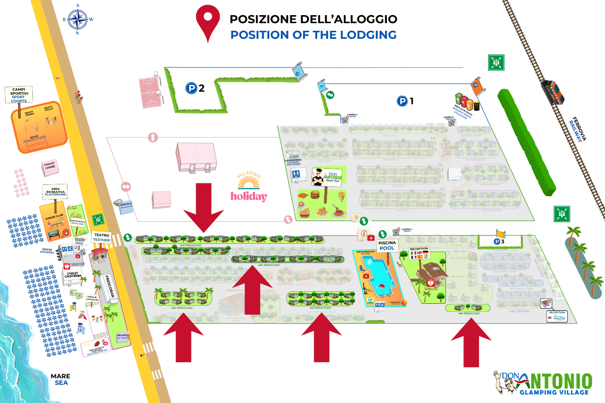 Il check-in si può effettuare già in mattinata per poter usufruire di tutti i servizi: spiaggia, piscina, street food e animazione. Gli alloggi verranno consegnati a partire dalle ore 16.